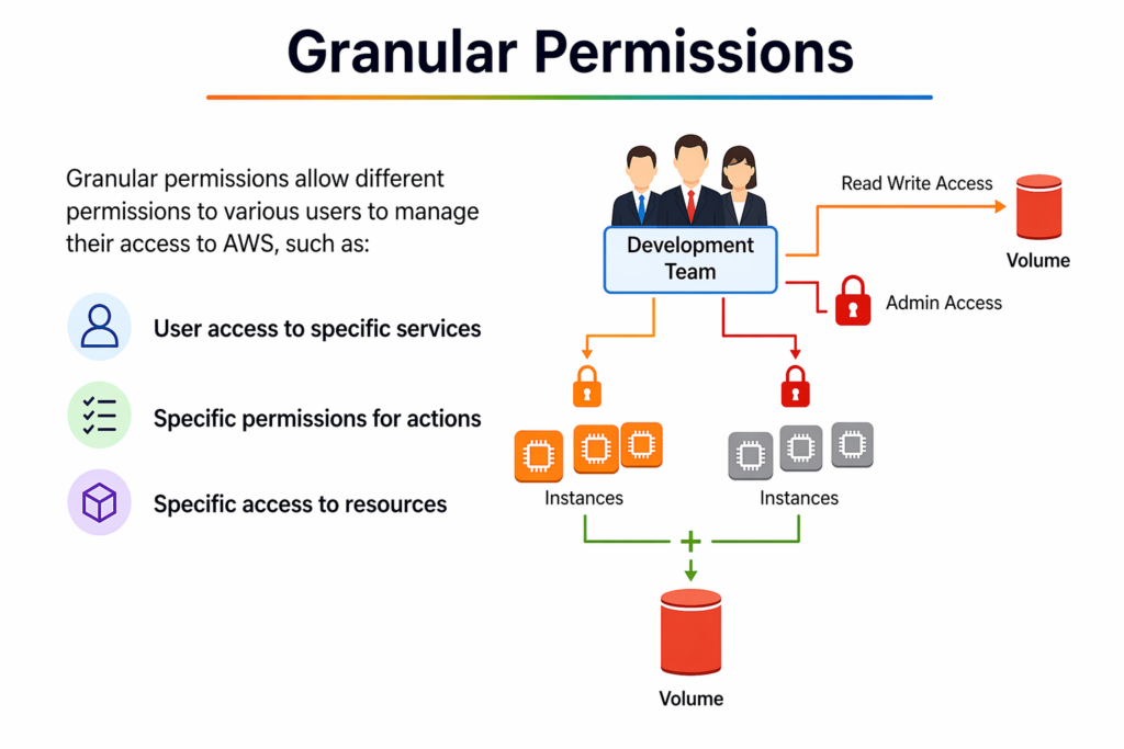 Granular Permissions in AWS mean giving very specific and limited access to users instead of full access.